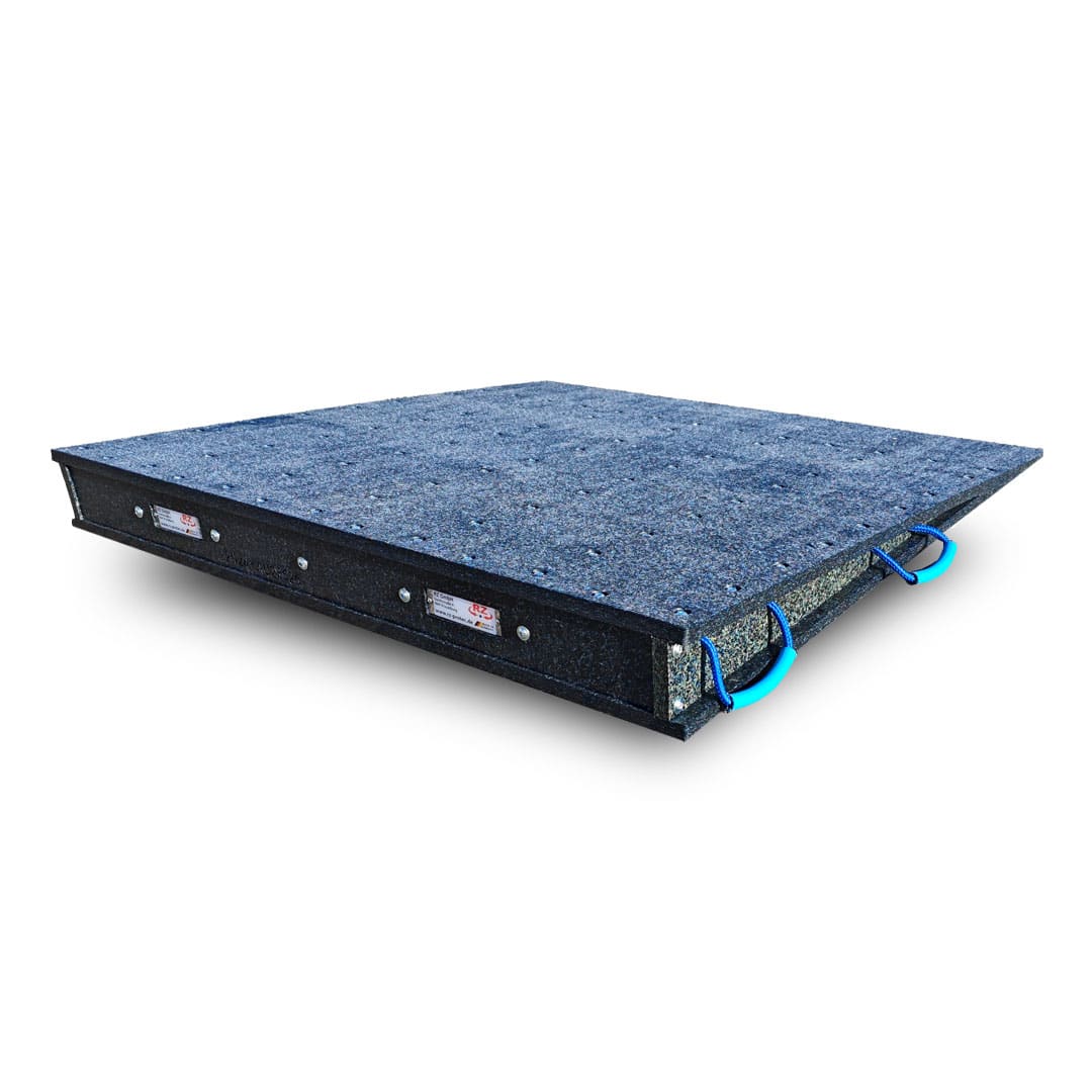 - Die Rampen sind durch Handgriff-Schlaufen (bis zu 4 Stück pro Rampe / je nach Gewicht) manuell zu bewegen und können mit einer rutschhemmenden Oberflächenfräsung ausgerüstet sein..