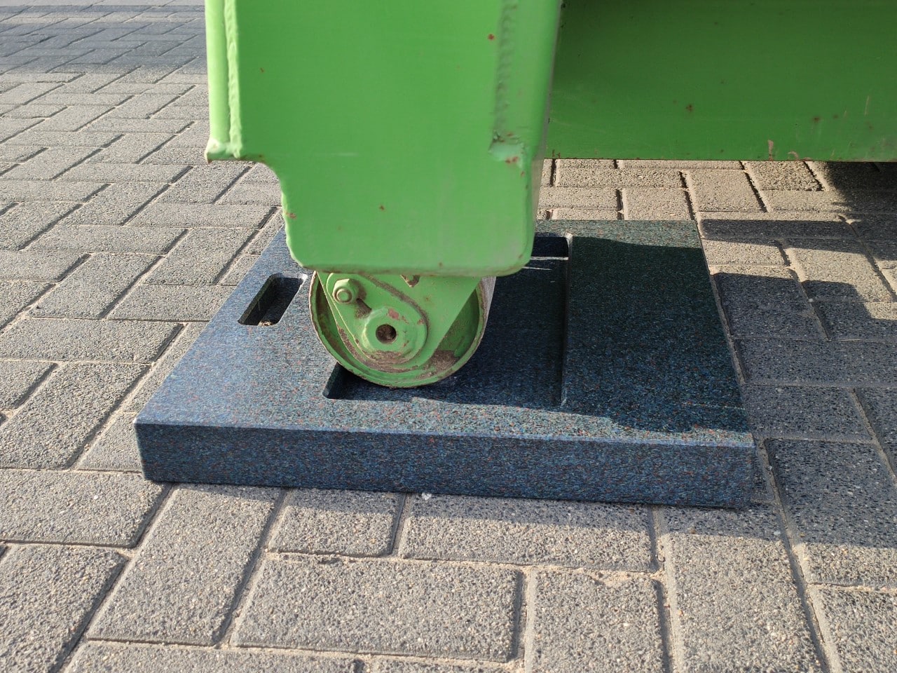 Bei unseren Platten verzichten wir bewußt auf einen Gummibelag auf der Unterseite, denn so erhalten wir die guten Gleiteigenschaften des Materials. So bleiben Sie trotz der Unterlegplatten begrenzt manövrierfahig und erleichtern das Abstellen der Container auf den Punkt genau.