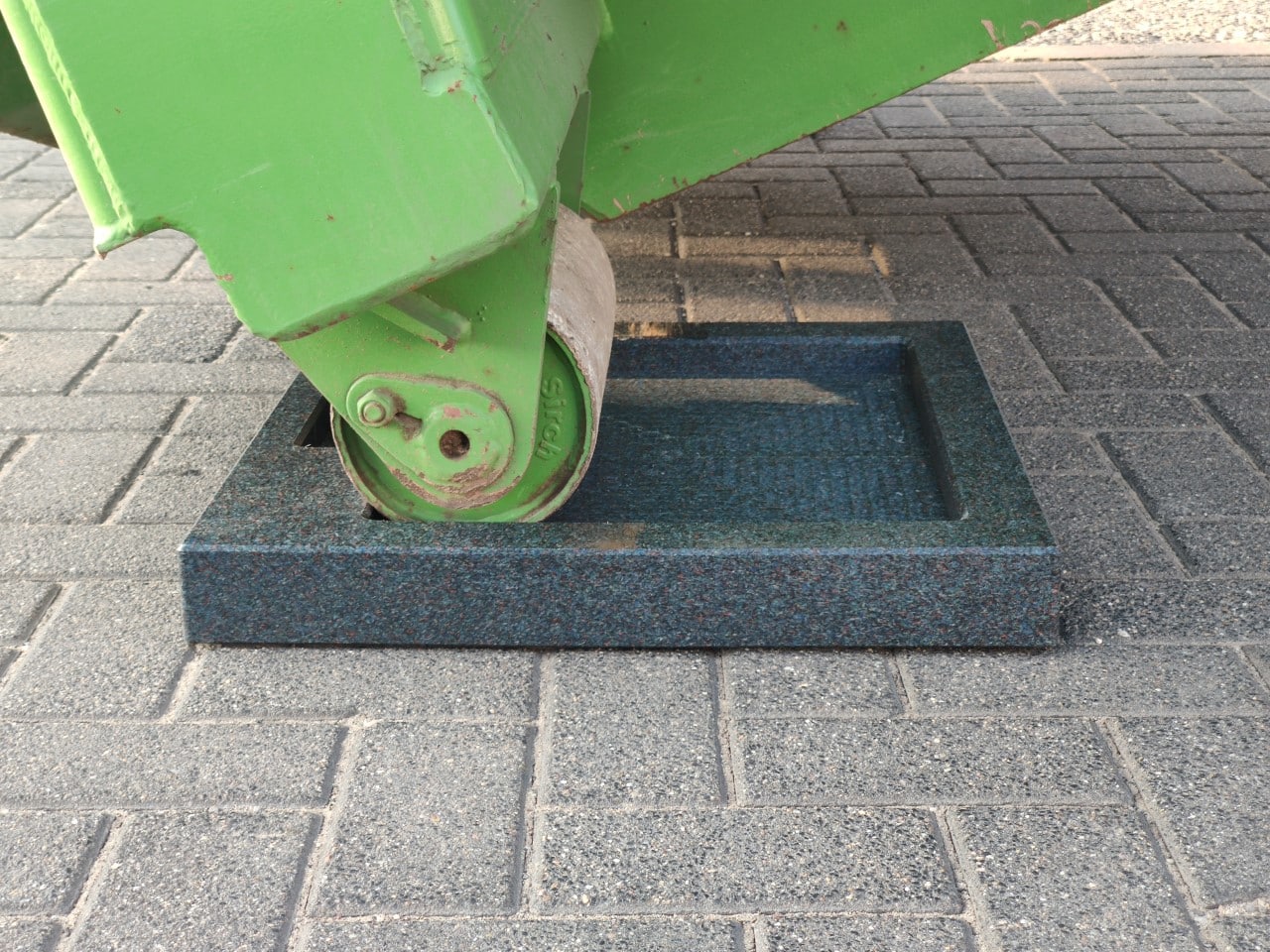 Bei unseren Platten verzichten wir bewußt auf einen Gummibelag auf der Unterseite, denn so erhalten wir die guten Gleiteigenschaften des Materials. So bleiben Sie trotz der Unterlegplatten begrenzt manövrierfahig und erleichtern das Abstellen der Container auf den Punkt genau.