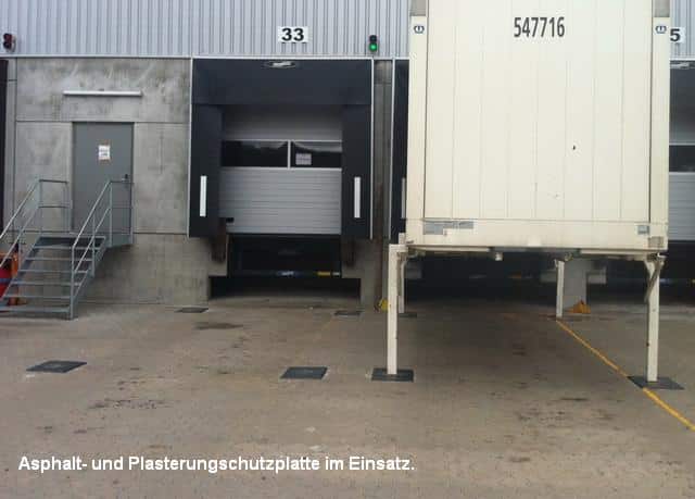 PE Kunststoff Asphalt- und Pflasterschutzplatten schützen Betonsteinpflaster und Asphaltflächen vor Beschädigungen durch Wechselbrücken.