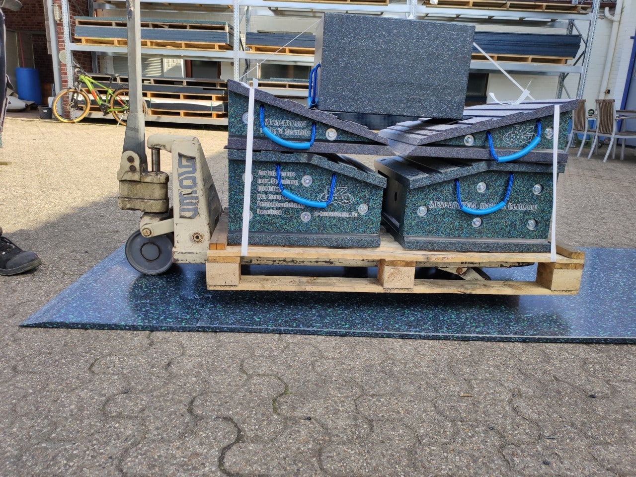 • Ideal um mit Hubwagen oder mit Schwerlastrollen (kleine Räder) zu befahren