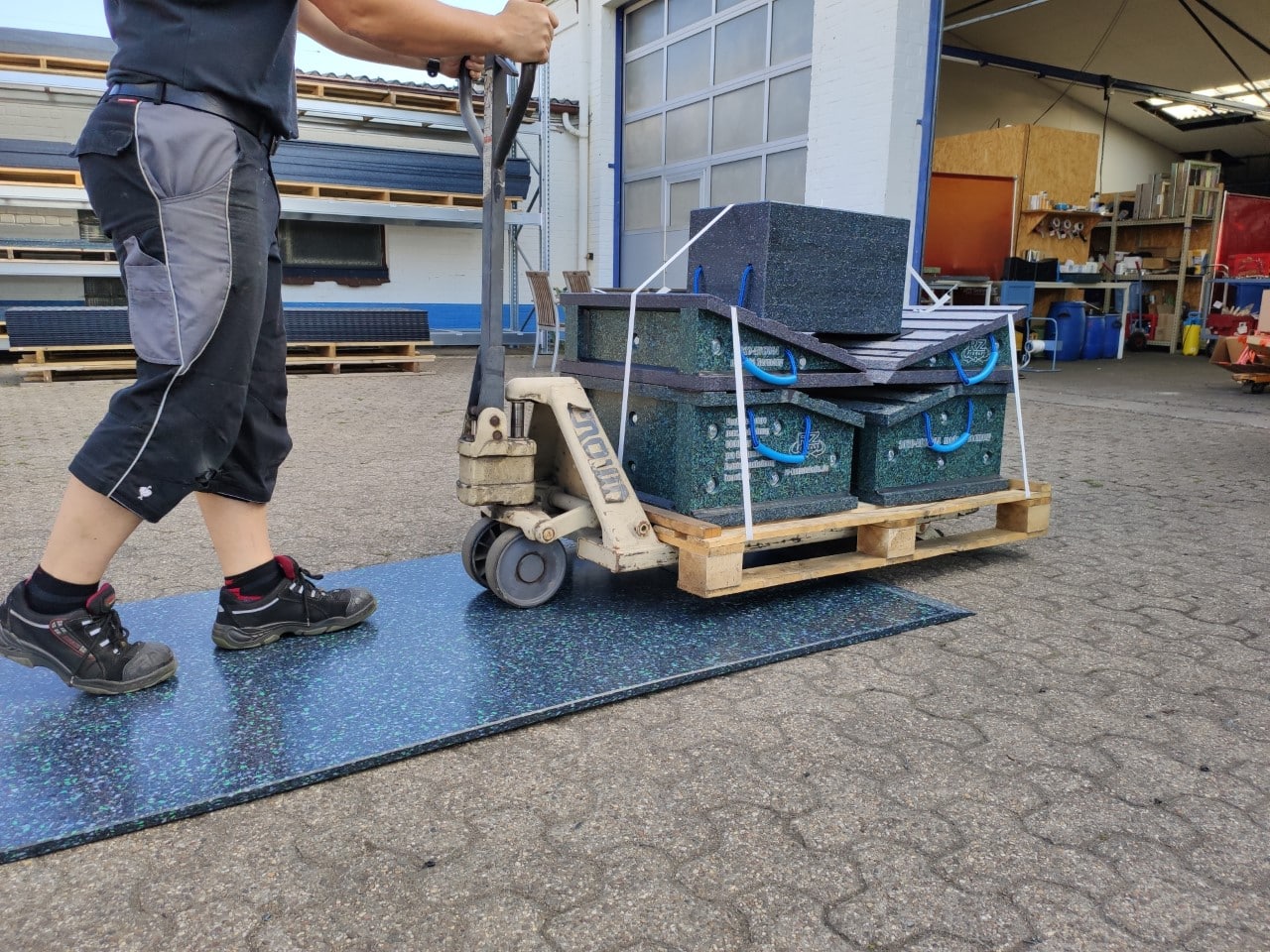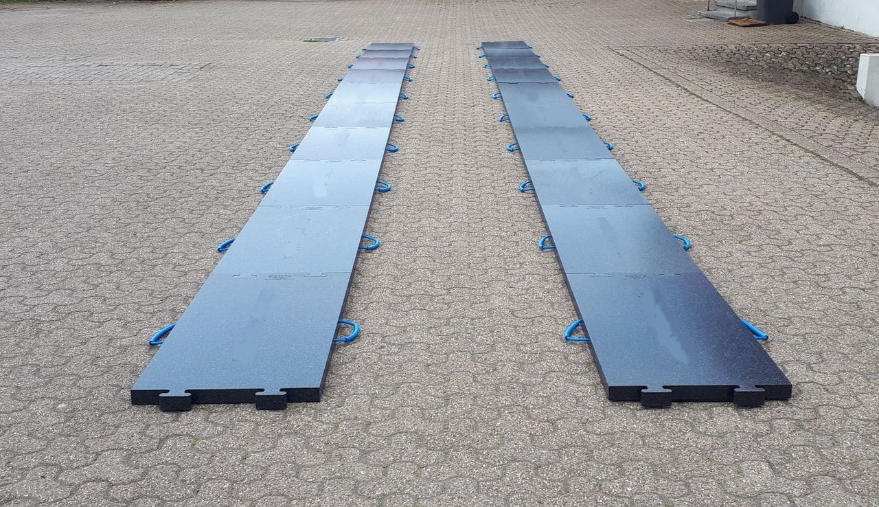 Die Kunststoffplatte verfügt über zwei positive und zwei negative Verbinder und kann ohne zusätzliches Zubehör lückenlos aneinandergefügt werden. Ideal für den Einsatz mit Hubwagen oder Schwerlastrollen mit kleinen Rädern – perfekt für den innerbetrieblichen Maschinentransport. Die hoch belastbare Oberfläche sorgt für eine stabile, fugenlose Fahrfläche ohne Stolperkanten.